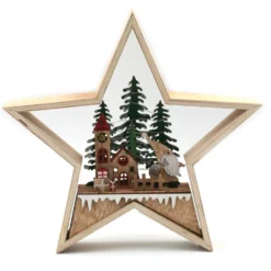 Village Et Renne – Déco De Noël Étoile En Bois Lumineux 25 Cm