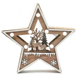 Forêt Et Biches – Déco De Noël Étoile En Bois Lumineux 25 Cm