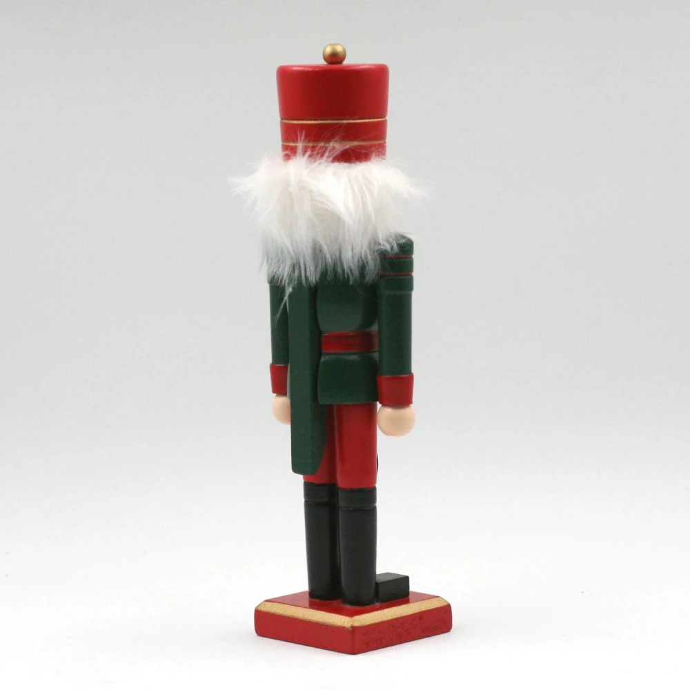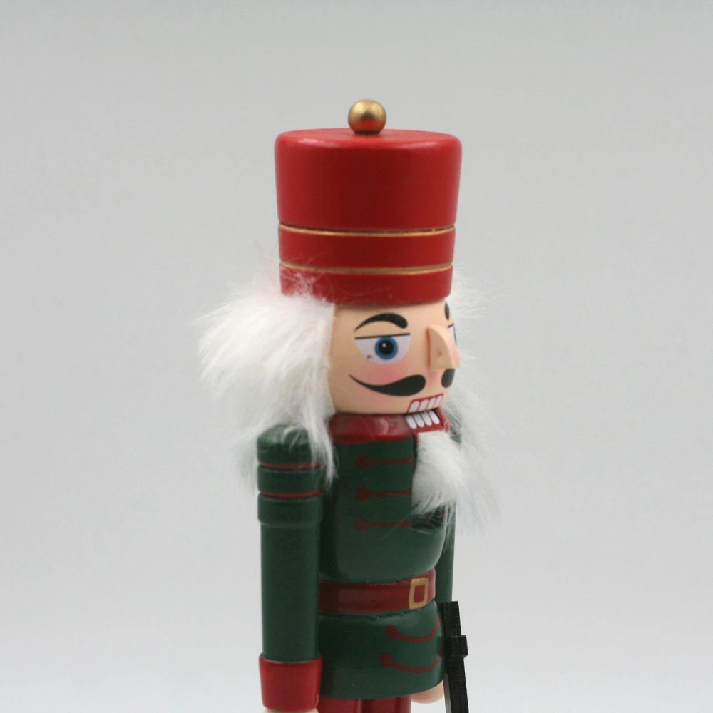 Accessoire parfait pour votre décoration de Noël, à placer sur un plan de travail, une table ou bien un meuble. Découvrez ce casse-noisette soldat avec un chapeau et son support de couleur rouge, cette statue est faite en bois et mesure environ 25 cm