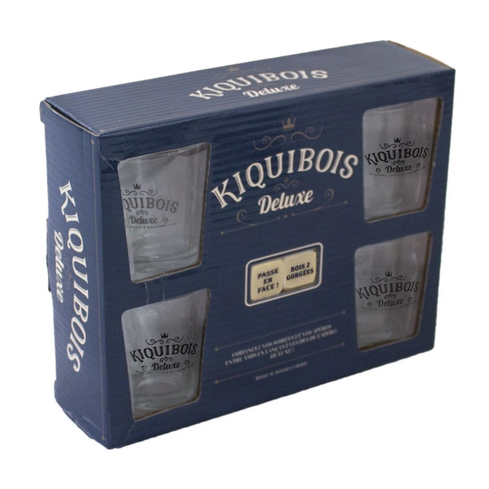le kiquibois est un jeu de hasard autour de la boisson le principe est simple chaque joueur à un verre on désigne le premier à tirer les dés sur le premier dé on indique une action comme « bois cul sec » ou « tout le monde bois! » ou encore « donne une gorgée » sur l’autre dé on désigne qui lancera les dés au prochain tour avec comme indication « passe à gauche » « passe en face » ou « garde la main » celui qui est le moins désigné est le grand gagnant.
