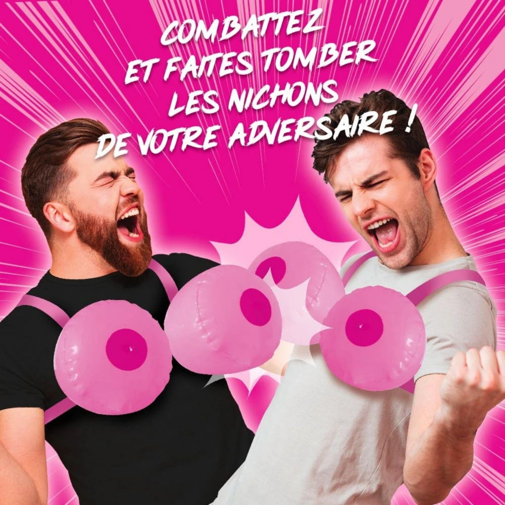 Jeu de combat de nichons gonflables ! Pour jouer les règles sont simples, prenez un ami à vous et mettez chacun vos nichons gonflés. Ensuite le duel commence, le premier qui arrive à faire tomber les deux nichons de l’autre a gagné ! Pour pimenter le duel, vous pouvez mettre en jeu un gage par exemple.
