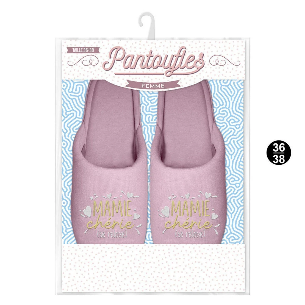 Chaussons Mamie Chérie (se relaxe), parfait pour offrir pour un anniversaire ou pour la Fête des Grands-Mères par exemple, taille 36 – 38