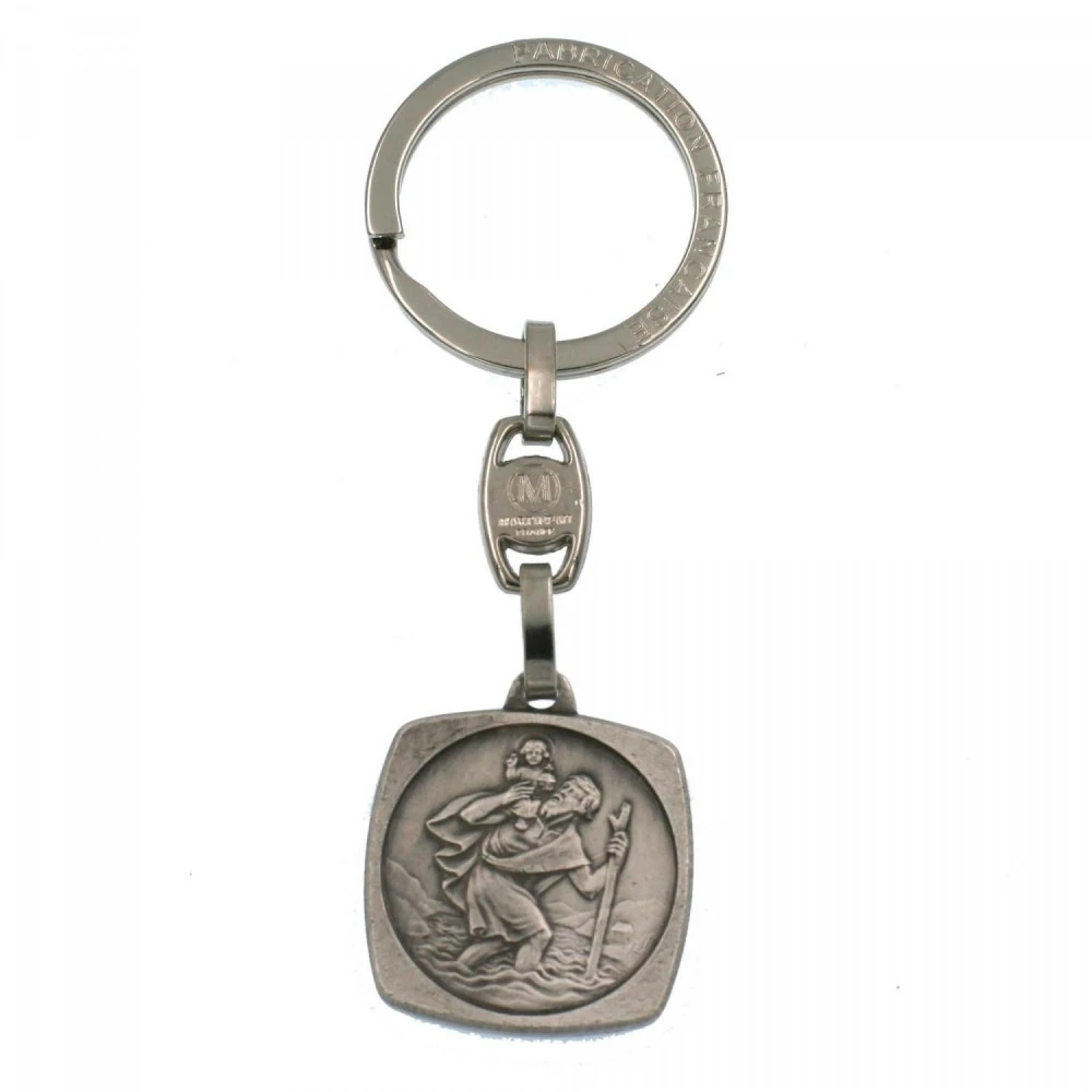 Ce porte clé possède une illustration de Saint Christophe, patron des voyageurs traversant la rivière avec Jesus sur les épaules.De fabrication Française ce porte clef en métal accompagnera les voyageurs.