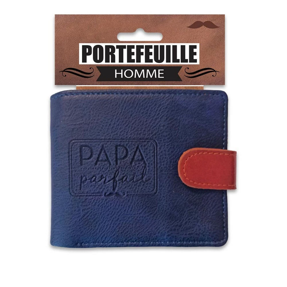 Joli Portefeuille pour Homme avec inscrit « Papa Parfait ». Le cadeau parfait pour la fête des Pères ! En reprenant les codes de l’Homme moderne, ce produit en matière synthétique propose un style sobre, avec des couleurs comme le bleu marine et le brun cuir. Intérieur brun, dimensions du portefeuille fermé : 11 x 9 cm