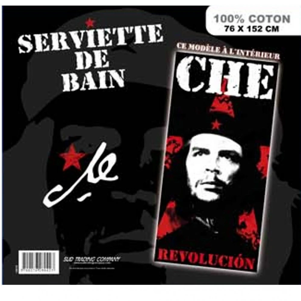 Serviette de bain noir imprimé du visage de Che Guevara avec la mention ‘Revolucion’.D’une dimension de 76 x 152cm cette serviette de bain est 100% Coton.