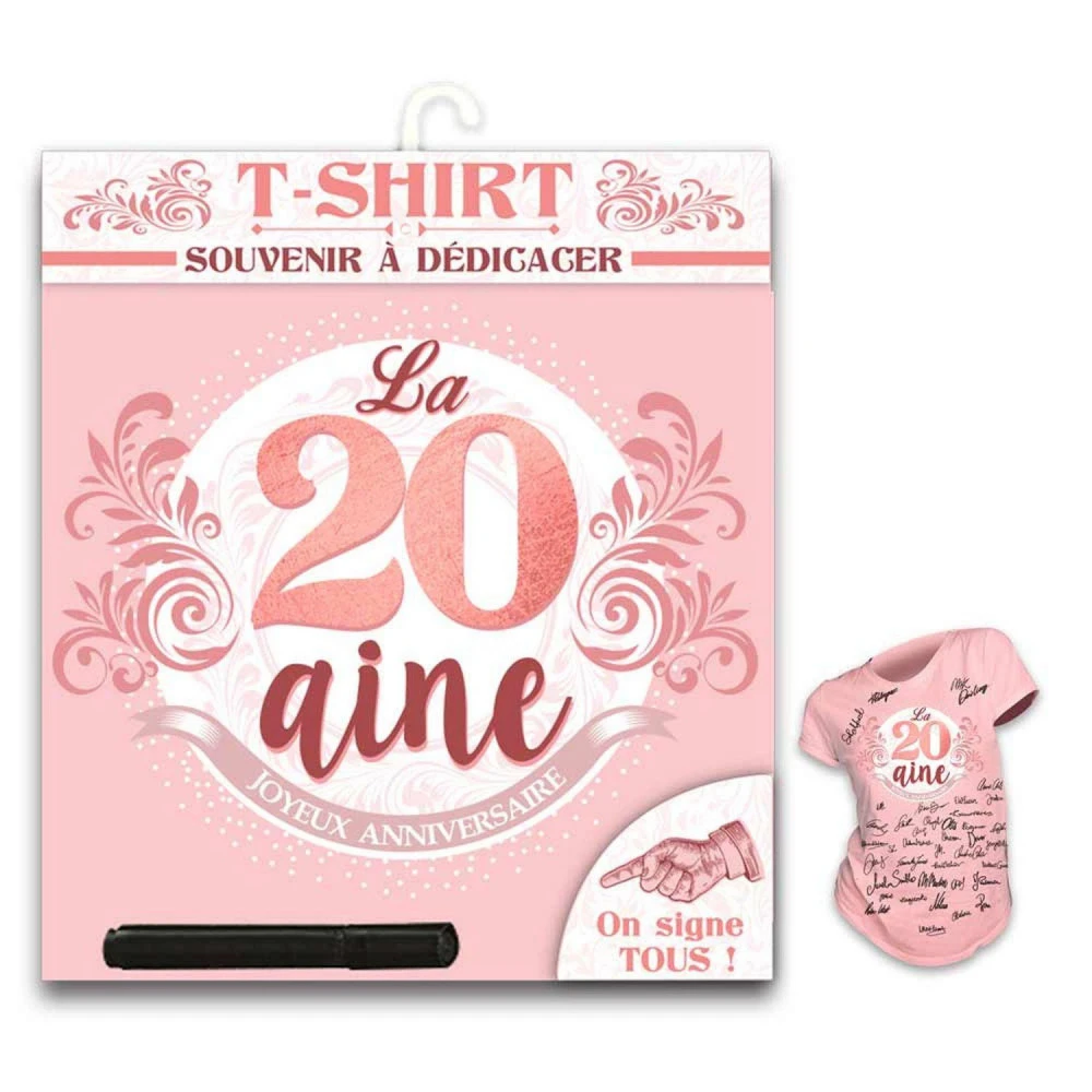 Fêter la vingtaine de vos amies avec ce T-Shirt à signer par tous pour garder un souvenir du moment présent, T-Shirt à garder précieusement et à porter si vous le souhaitez