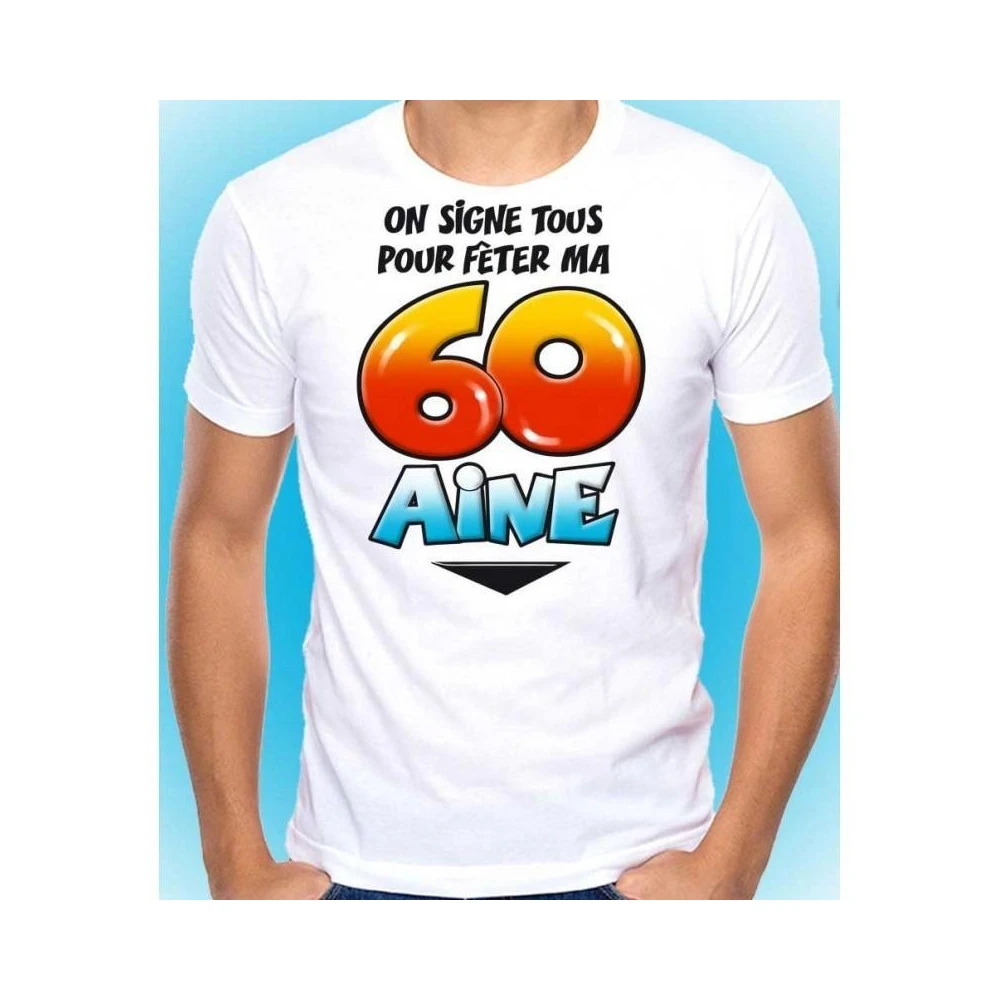 Ce t-Shirt humoristique pour fêter un anniversaire de la 60aine est accompagné d’un marker afin que chacun puissent signer.
