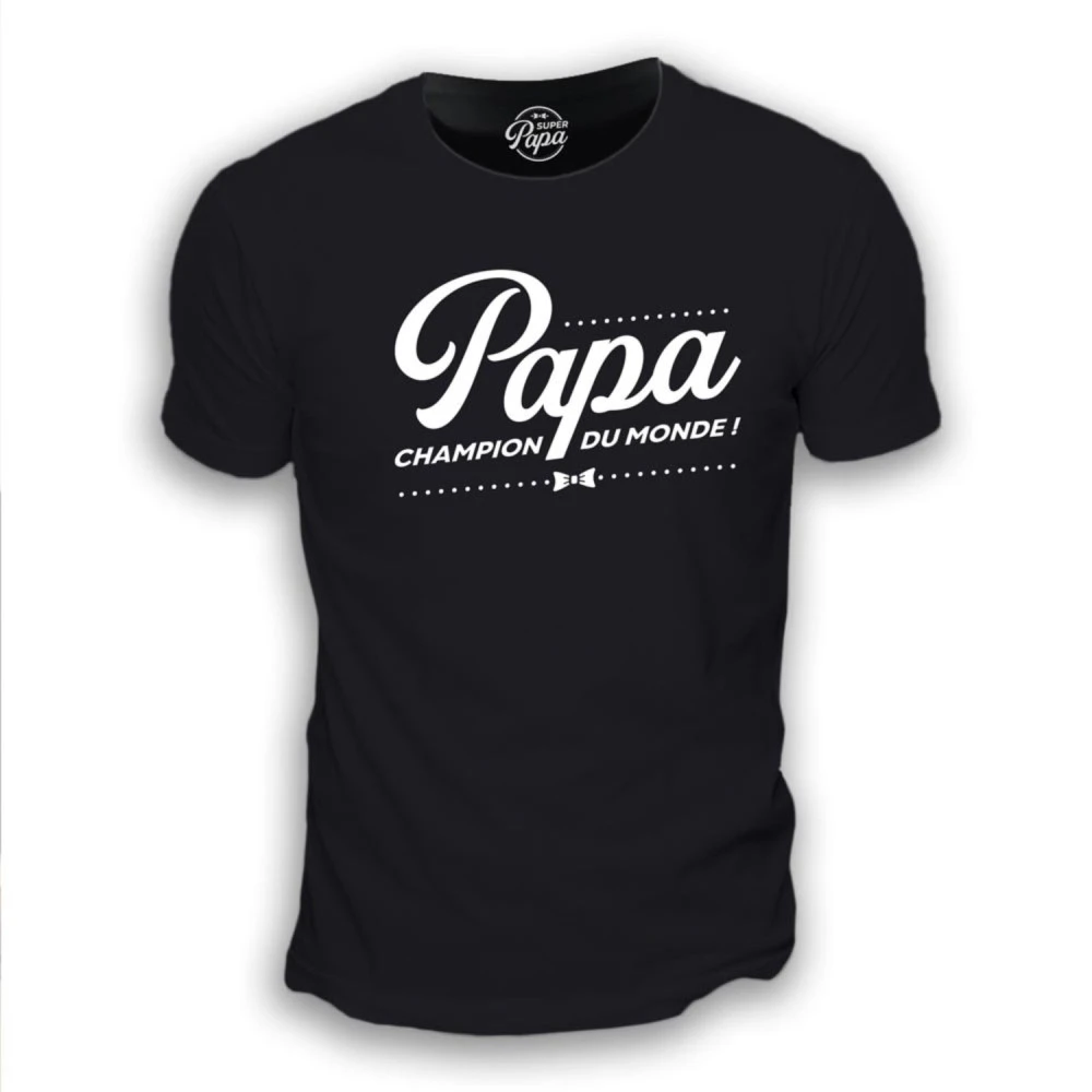Ce t-shirt a été spécialement conçu pour la fête des Pères et est destiné à plaire aux Papas. Il est fabriqué à partir de 100% de coton, ce qui le rend confortable à porter. Le t-shirt possède un col rond classique et arbore fièrement l’inscription « Papa Champion du Monde ». Cette mention affective est un moyen de montrer l’admiration et l’affection que l’on lui porte. En offrant ce t-shirt, vous lui donnez un vêtement à la fois confortable et symbolique. Il pourra le porter avec fierté lors de la fête des Pères et à d’autres occasions, affichant ainsi son statut de « Papa Champion du Monde ».