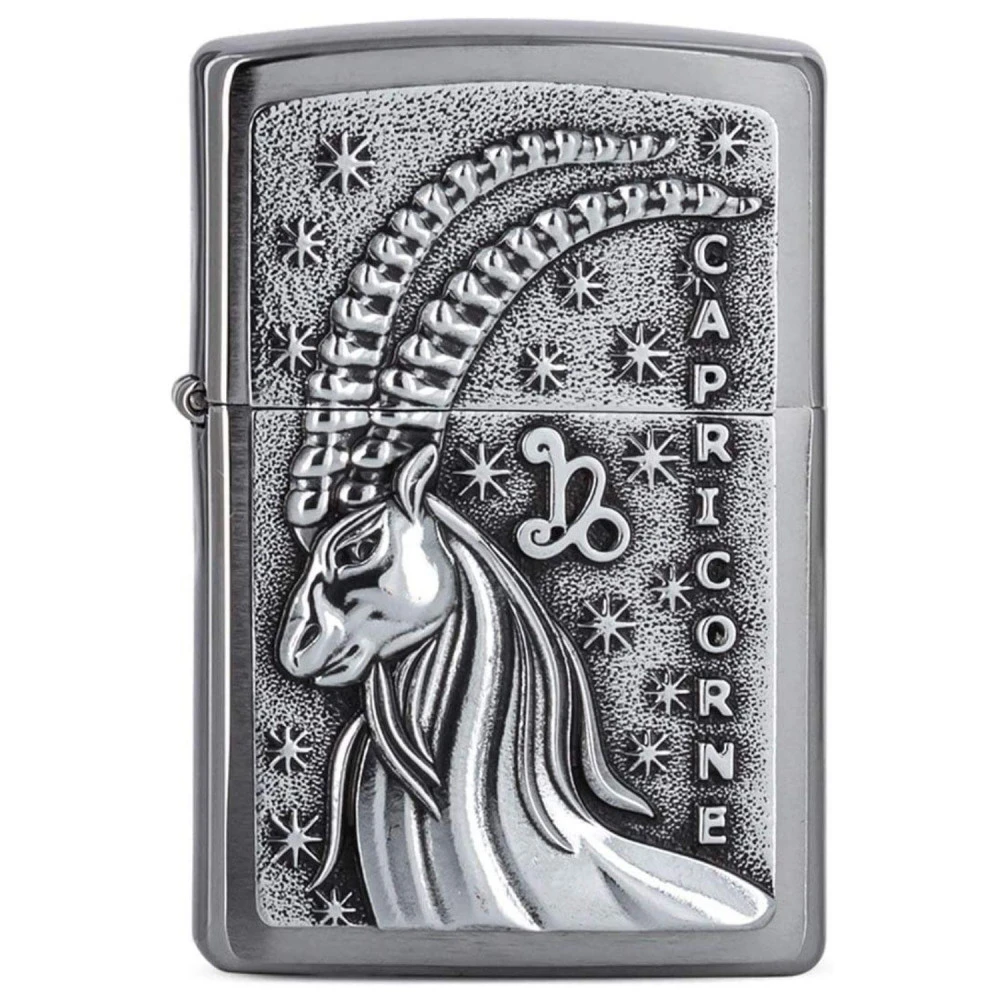 Briquet Zippo Signe du Zodiaque Capricorne, avec une représentation de ce signe en relief sur la face avant. Les briquets Zippo sont résistants et fonctionnels, ils possèdent une Garantie à Vie. Ce produit est présenté dans un coffret, il fera un excellent cadeau à un proche ou pour son propre usage. Produit fabriqué aux États-Unis, le fabriquant recommande l’utilisation d’essence Zippo et de produit de rechange Zippo pour une utilisation optimale